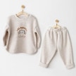 2-3-4 Yaş Ayıcık Sallanan Ayak Desenli Likra Penye Kumaş Sweat Pantolonlu Kız Erkek 2li Çocuk Takımı Ekru