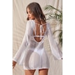 Angelsin Örme Pamuk Uzun Kollu Pareo Plaj Elbisesi Kimono Kaftan Siyah