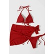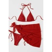 Angelsin Pareolu Bağlamalı 3'lü Bikini Takım Set Çıkartılabilir Kaplı Kırmızı
