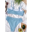 Angelsin Yüksek Bel Fitilli Kumaş Bikini Altı Mavi