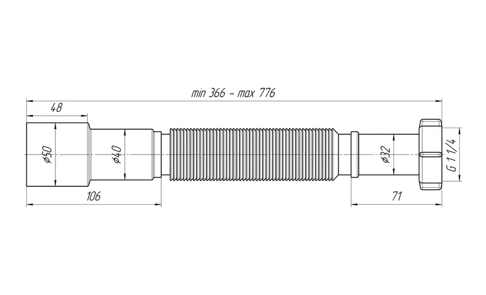 Anı Plast Lavabo Sifonu Oluklu, Çıkışsız 1 1/4" X 40/50 Mm 316836831