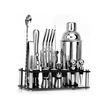 Electric 23 Parça Profesyonel Paslanmaz Çelik Kokteyl Çalkalayıcı Seti, Bambu Standlı, Gümüş
