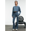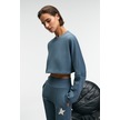 ANOUK Kadın Pamuklu Baskı Ve Patch Detaylı Bisiklet Yaka Crop Petrol Mavisi Sweatshirt