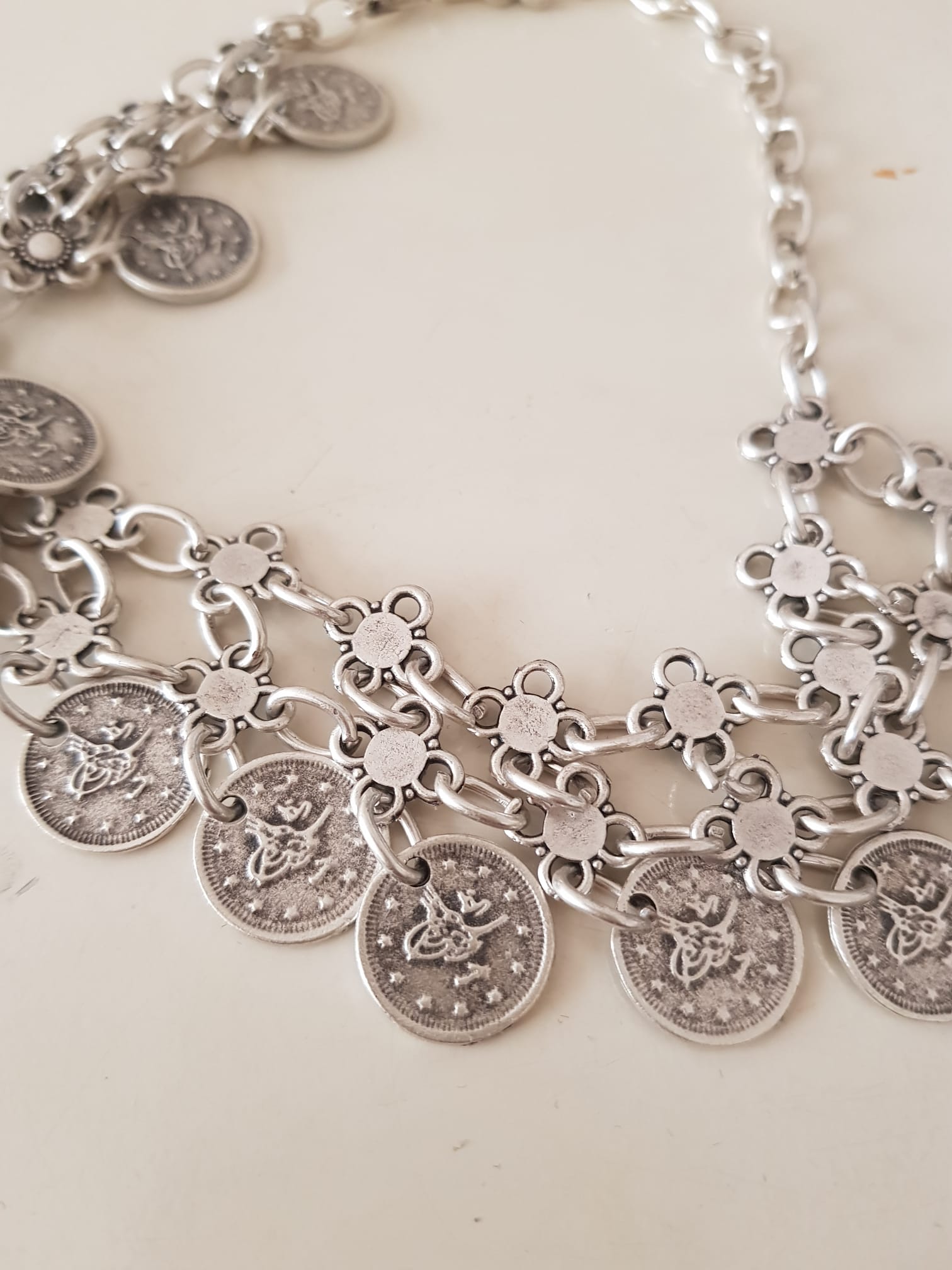 Antik Gümüş Kaplama Çift Sıra Boncuk & Tuğra Şekilli El Yapımı Ka