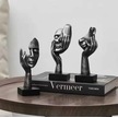 Antik Tarz Siyah Gümüş Soyut El Yüz Biblo Heykel Dekoratif Obje S