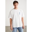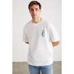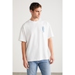 Antonıo Erkek Baskı Detaylı %100 Organik Pamuk Örme Oversize Beyaz T-shirt