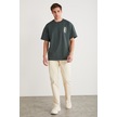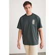 Antonıo Erkek Baskı Detaylı %100 Organik Pamuk Örme Oversize Yeşil T-shirt