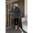 Antrasit Düğmeli Kuşaklı Kaşe Panço - 2055 Antrasit