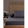 Antrasit Pamuklu Çizgili Saten Lastikli Çarşaf Takımı Tek Kişilik + 1 Yastık Kılıfı Antrasit