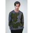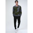 Antrasit Regular Fit Yeşil Desenli Bisiklet Yaka Triko Kazak-antrasit Antrasit