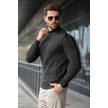 Monox Erkek Yarım Fermuarlı Polo Yaka Triko Kazak Siyah