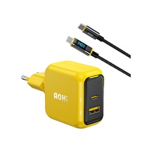 Aohi Magcube 67w 2 Portlu Şarj Adaptörü, 140w Led Ekranlı Naylon Örgülü Süper Hızlı Şarj/data Kablosu