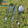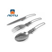 Aotu At6387 Dış Mekan Paslanmaz Çelik Katlanabilir Bıçak + Çatal + Kaşık Kamp, Yürüyüş Vb. İçin 3'ü 1 Arada Set.