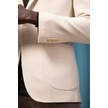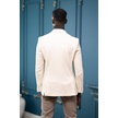 Apartro Regular Fit Mono Yaka Çift Yırtmaç Torba Cep Armürlü Tek Ceket Krem