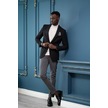Apartro Regular Fit Mono Yaka Çift Yırtmaç Torba Cep Armürlü Tek Ceket Siyah
