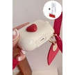Apple Airpods 3. Nesil İle Uyumlu Kılıf Kalp Leopar Taş Kiraz Desenli Fiyok Tutmalı Kılıflar Kırmızı