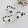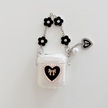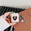 Apple Airpods 3. Nesil İle Uyumlu Kılıf Kalp Leopar Taş Kiraz Desenli Fiyok Tutmalı Kılıflar Siyah+gümüş