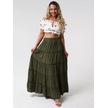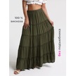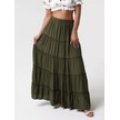 Zanzea Kadın Moda Yüksek Bel A-line Saten Etekler Düz Renk Parti Uzun Etekler Asker Yeşili Yeşil