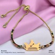 Aralık Ayı Doğumlarına Renkli Taş Desenli Taç Motifli 14 Ayar Altın Plakalı Hediye Bileklik-489ay Aralık