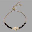 Archin A Harfine Özel Kalp Figürlü Siyah Taş Desenli 14 Ayar Altın Plakalı Hediye Bileklik-351harf A