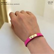 Archin Ağustos Ayı Doğumlarına 14 Ayar Altın Plakalı Pembe Derili Kelebek Figürlü Hediye Bileklik-651ay Ağustos
