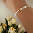 Archin Aile Temalı Dikdörtgen Figürlü Beyaz Örgülü 14 Ayar Altın Plakalı Hediye Bileklik-413sembol Aile