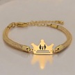 Archin Aile Temalı Hasır Kordonlu Taç Figürlü 14 Ayar Altın Plakalı Hediye Bileklik-464sembol Aile