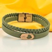 Archin Anne Temalı 14 Ayar Altın Plakalı Zeytin Yeşili Derili Kalp Motifli Hediye Bileklik-556sembol Anne