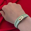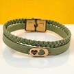 Archin Aşk Temalı Zeytin Yeşili Derili Kalp Motifli 14 Ayar Altın Plakalı Hediye Bileklik-556sembol Aşk