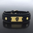 Archin Asker Kafatası Temalı 14 Ayar Altın Plakalı Siyah Derili Oval Motifli Hediye Bileklik-438sembol Asker Kafatası