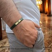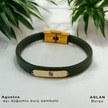 Archin Aslan Burçlarına Dikdörtgen Motifli Yeşil Derili 14 Ayar Altın Plakalı Hediye Bileklik-371burç Aslan