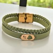 Archin Atatürk Temalı Zeytin Yeşili Derili Kalp Motifli 14 Ayar Altın Plakalı Hediye Bileklik-556sembol Atatürk