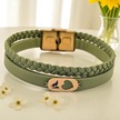 Archin Bozkurt Temalı Kalp Motifli 14 Ayar Altın Plakalı Zeytin Yeşili Derili Hediye Bileklik-556sembol Bozkurt