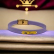 Archin Cansu İsmine Özel 14 Ayar Altın Plakalı Taç Motifli Hakiki Mor Derili Hediye Bileklik-571isim Cansu