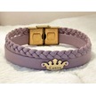 Archin Cansu İsmine Özel Doğal Mor Derili Taç Figürlü 14 Ayar Altın Plakalı Hediye Bileklik-637isim Cansu