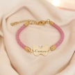 Archin Cansu İsmine Özel Doğal Pembe Derili Kelebek Motifli 14 Ayar Altın Plakalı Hediye Bileklik-429isim Cansu
