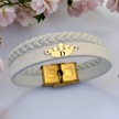 Archin D Harfine Özel Taç Motifli 14 Ayar Altın Plakalı Hakiki Beyaz Derili Hediye Bileklik-645harf D