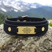 Archin Dharma Çarkı Temalı Oval Motifli 14 Ayar Altın Plakalı Doğal Siyah Derili Hediye Bileklik-438sembol Dharma Çarkı