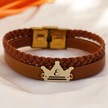 Archin E Harfine Özel 14 Ayar Altın Plakalı Kahverengi Derili Taç Motifli Hediye Bileklik-467harf E
