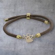 Archin E Harfine Özel Kahverengi Örgülü 14 Ayar Altın Plakalı Mevlana Figürlü Hediye Bileklik-335harf Altın