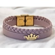 Archin Ebru İsmine Özel 14 Ayar Altın Plakalı Doğal Mor Derili Taç Figürlü Hediye Bileklik-637isim Ebru