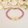Archin Ebru İsmine Özel 14 Ayar Altın Plakalı Doğal Pembe Derili Kelebek Motifli Hediye Bileklik-429isim Ebru