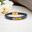 Archin Ebru İsmine Özel Hakiki Siyah Derili Kalp Figürlü 14 Ayar Altın Plakalı Hediye Bileklik-568isim Ebru