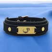 Archin Ejderha Temalı 14 Ayar Altın Plakalı Doğal Siyah Derili Oval Motifli Hediye Bileklik-438sembol Ejderha