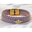 Archin Feride İsmine Özel Taç Figürlü 14 Ayar Altın Plakalı Doğal Mor Derili Hediye Bileklik-637isim Feride
