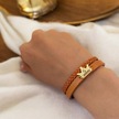 Archin Ğ Harfine Özel 14 Ayar Altın Plakalı Kahverengi Derili Taç Motifli Hediye Bileklik-467harf Ğ