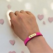 Archin Gül İsmine Özel 14 Ayar Altın Plakalı Doğal Pembe Derili Kelebek Figürlü Hediye Bileklik-651isim Gül