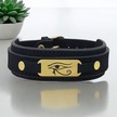 Archin Horus Gözü Temalı 14 Ayar Altın Plakalı Doğal Siyah Derili Oval Motifli Hediye Bileklik-438sembol Horus Gözü