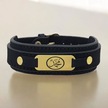 Archin Hz Muhammed Temalı 14 Ayar Altın Plakalı Doğal Siyah Derili Oval Motifli Hediye Bileklik-438sembol Hz Muhammed Sembolü