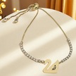 Archin İ Harfine Özel 14 Ayar Altın Plakalı Beyaz Taş Detaylı Kuğu Kuşu Motifli Hediye Bileklik-601harf İ